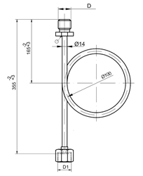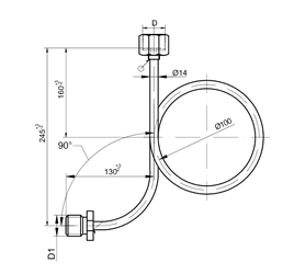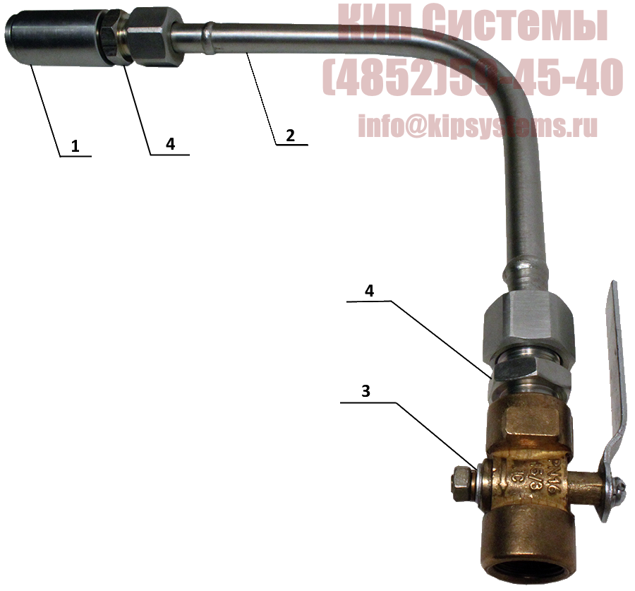 Трубка отборного устройства с наружной резьбой к прибору с гайкой с внутренней резьбой к процессу.